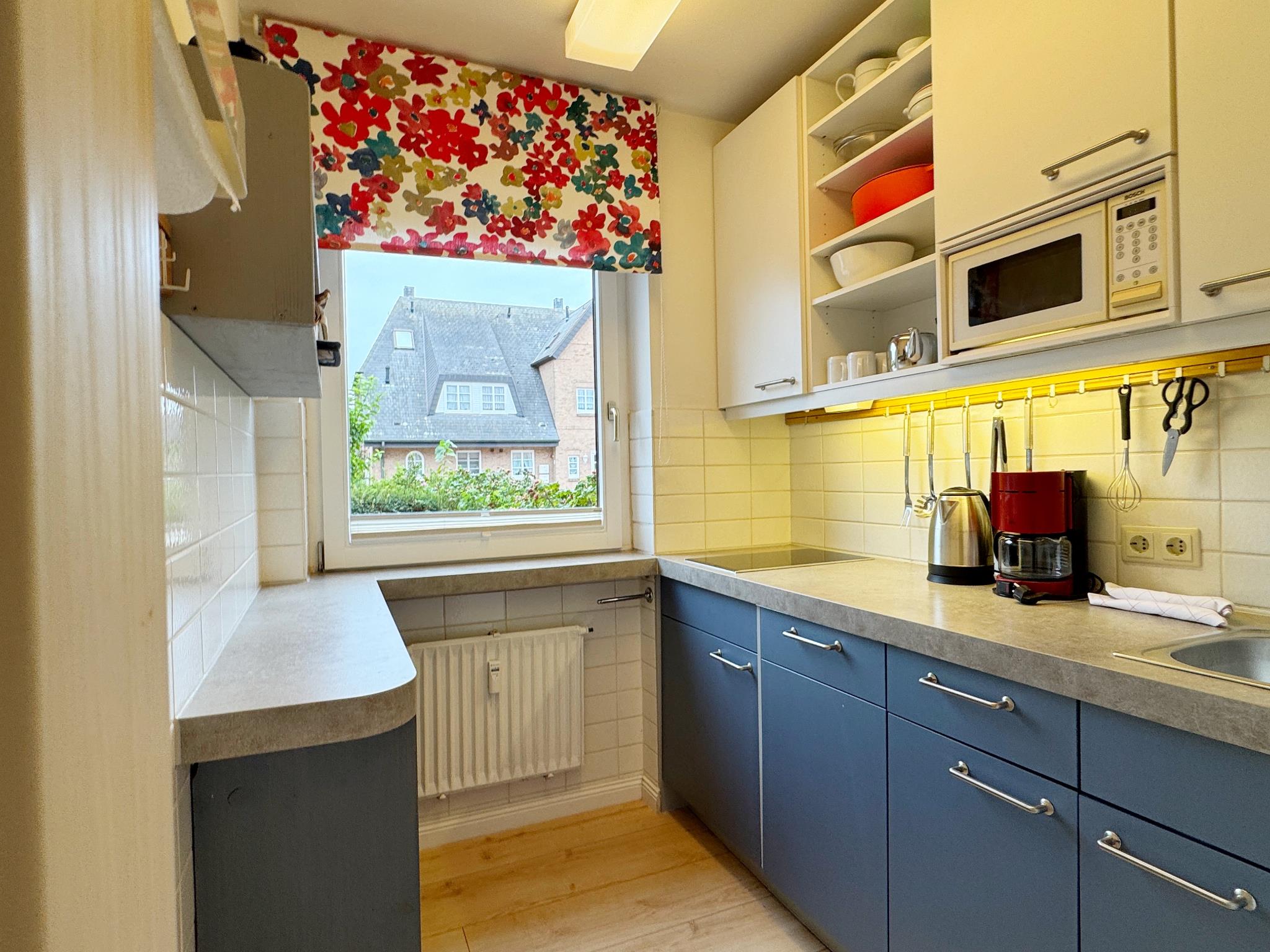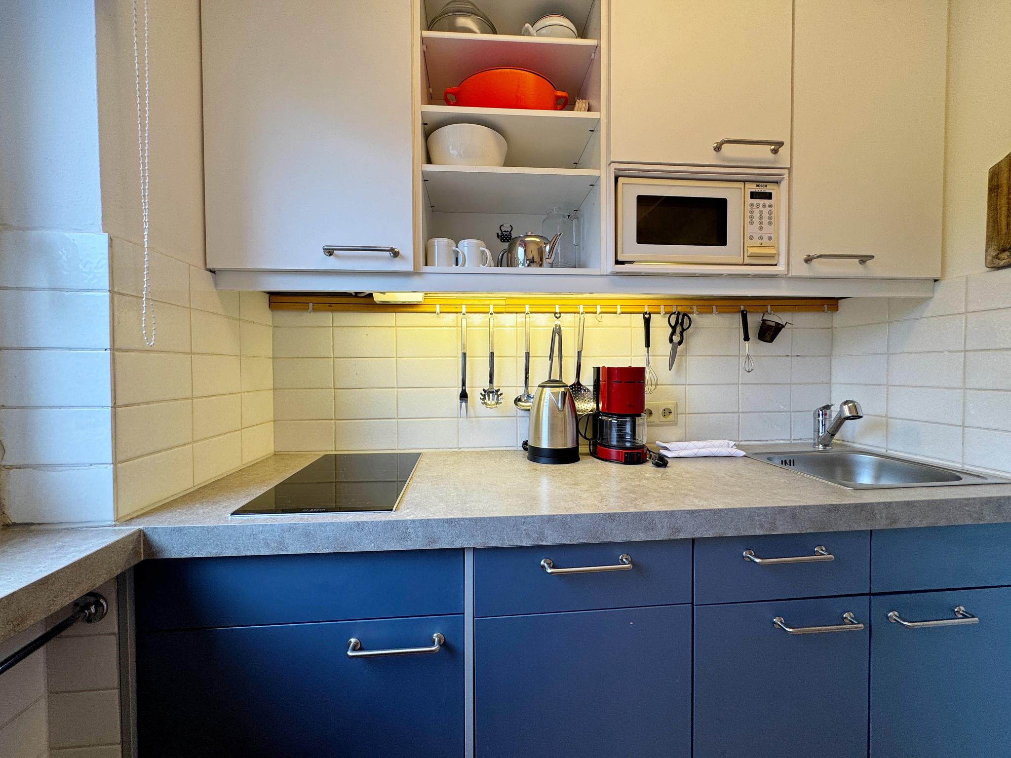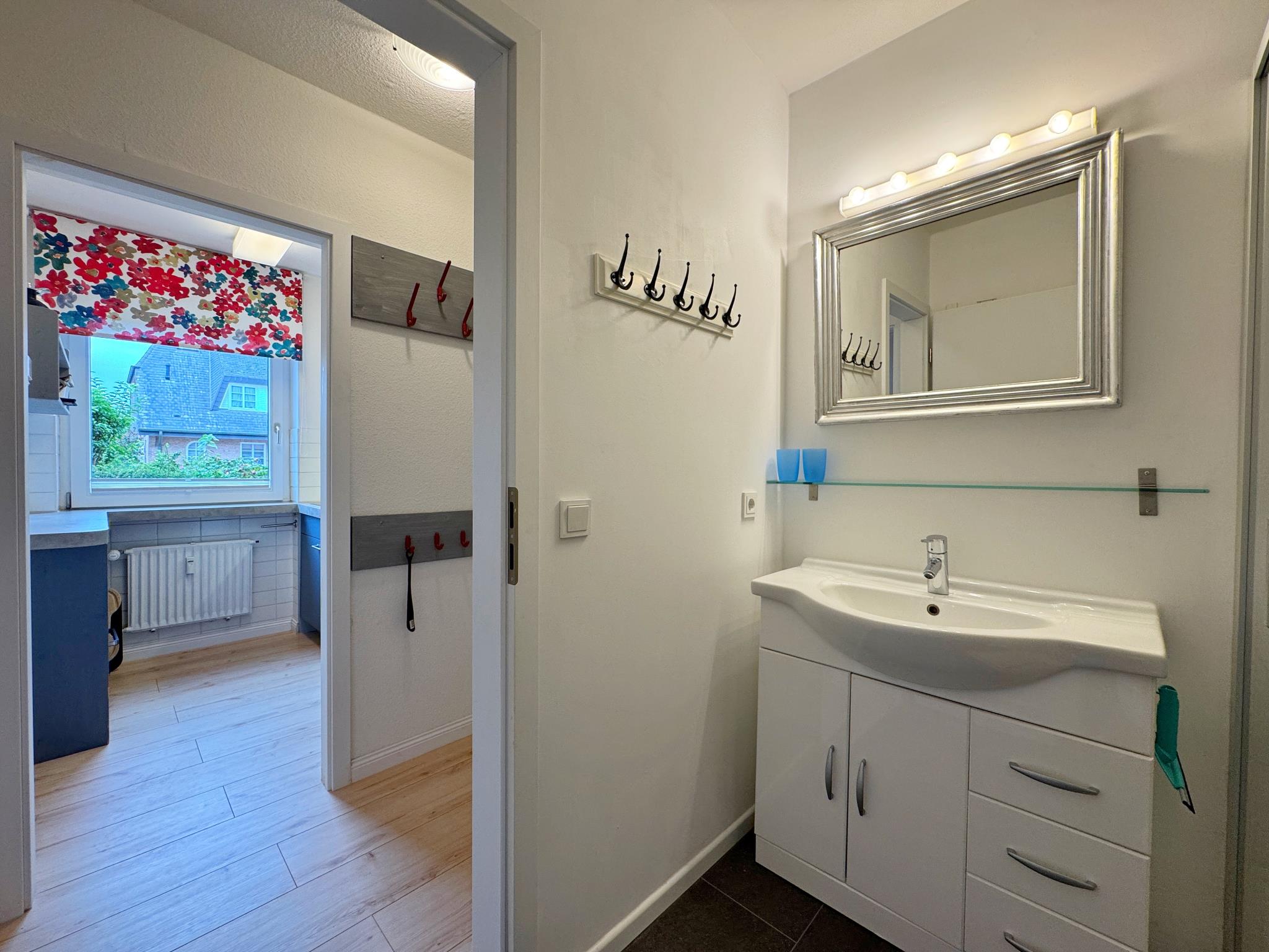 In der durchdacht eingerichteten Wohnung sind auch längere Aufenthalte problemlos möglich, zumal sich in der reichlich ausgestatteten Küche gut kochen lässt und Wäsche im Keller gewaschen und getrocknet werden kann. Das Duschbad wurde kürzlich neu gestaltet.