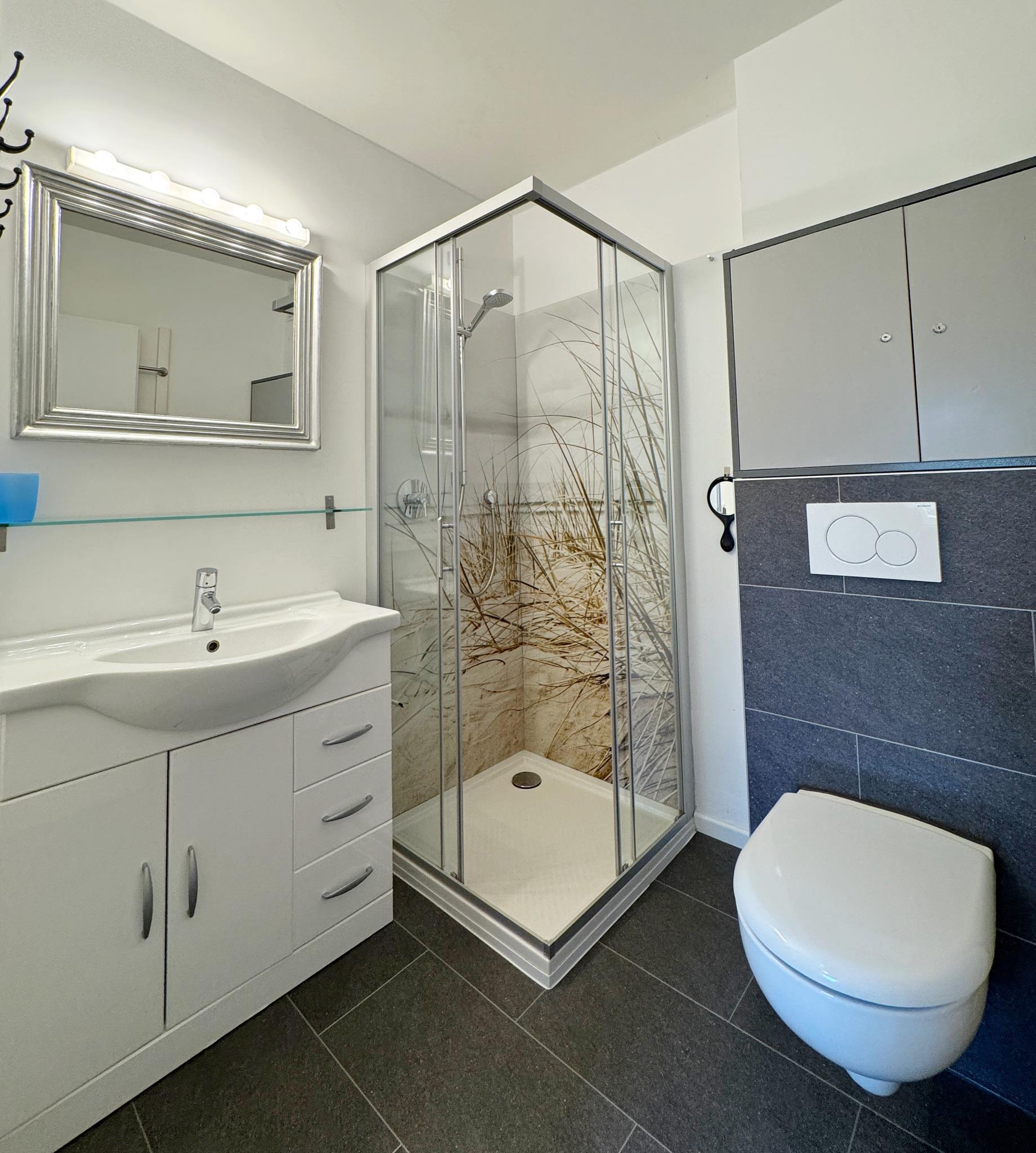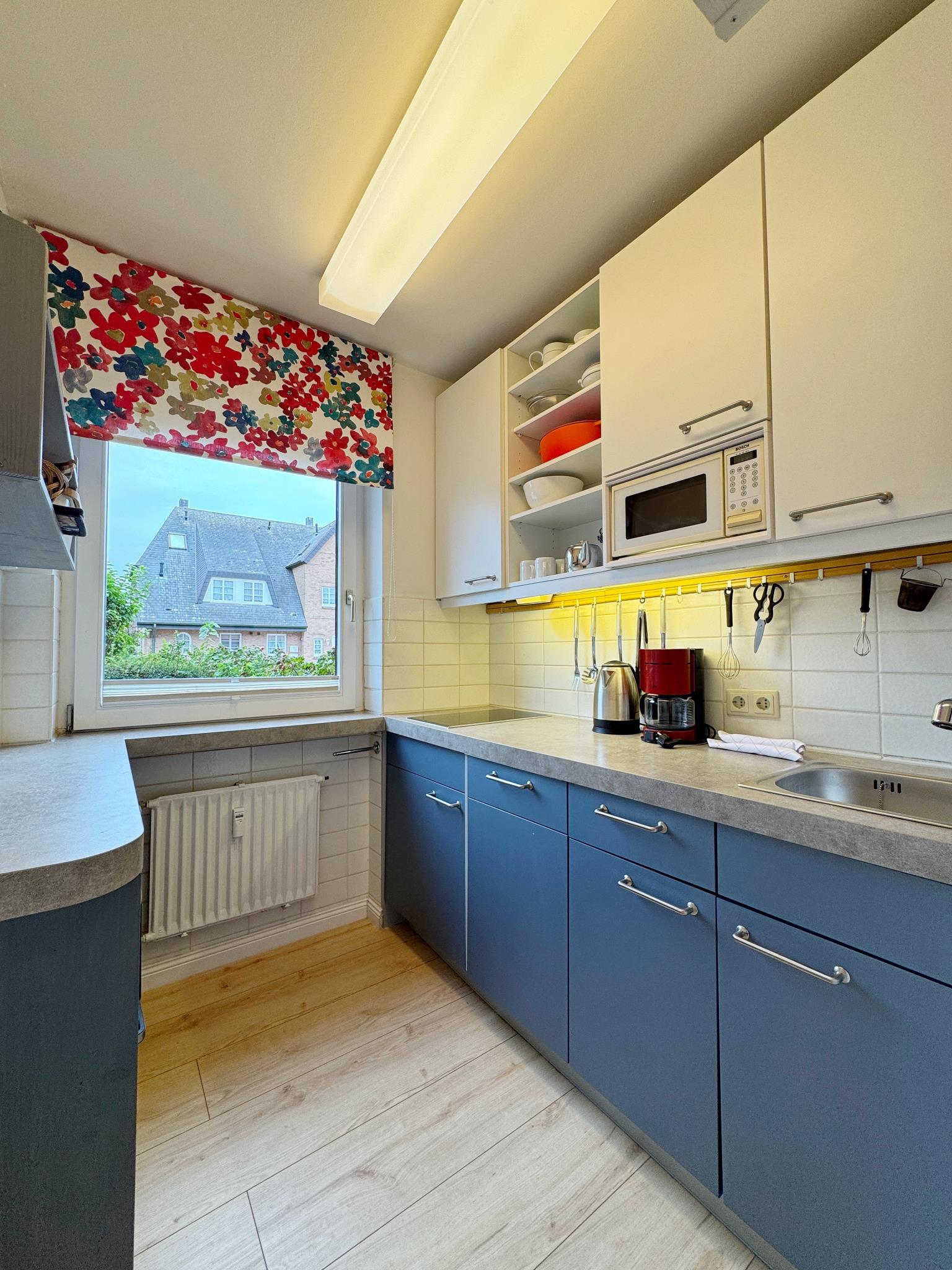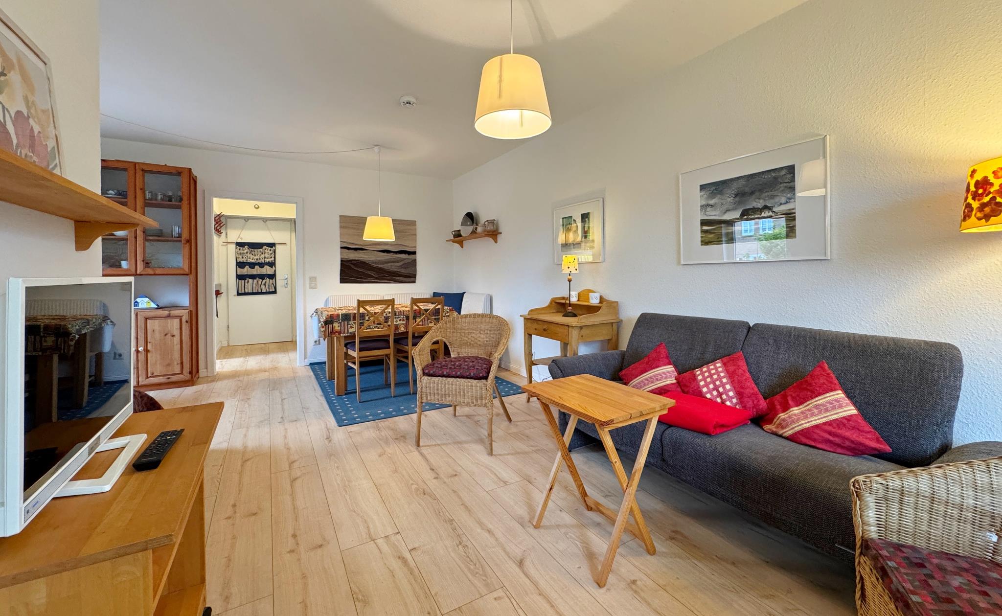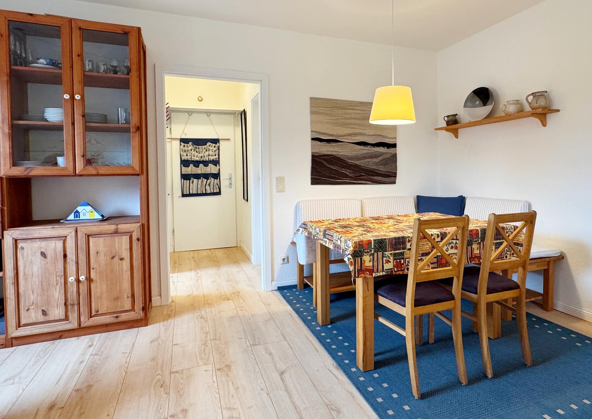 In der durchdacht eingerichteten Wohnung sind auch längere Aufenthalte problemlos möglich, zumal sich in der reichlich ausgestatteten Küche gut kochen lässt und Wäsche im Keller gewaschen und getrocknet werden kann. Das Duschbad wurde kürzlich neu gestaltet.