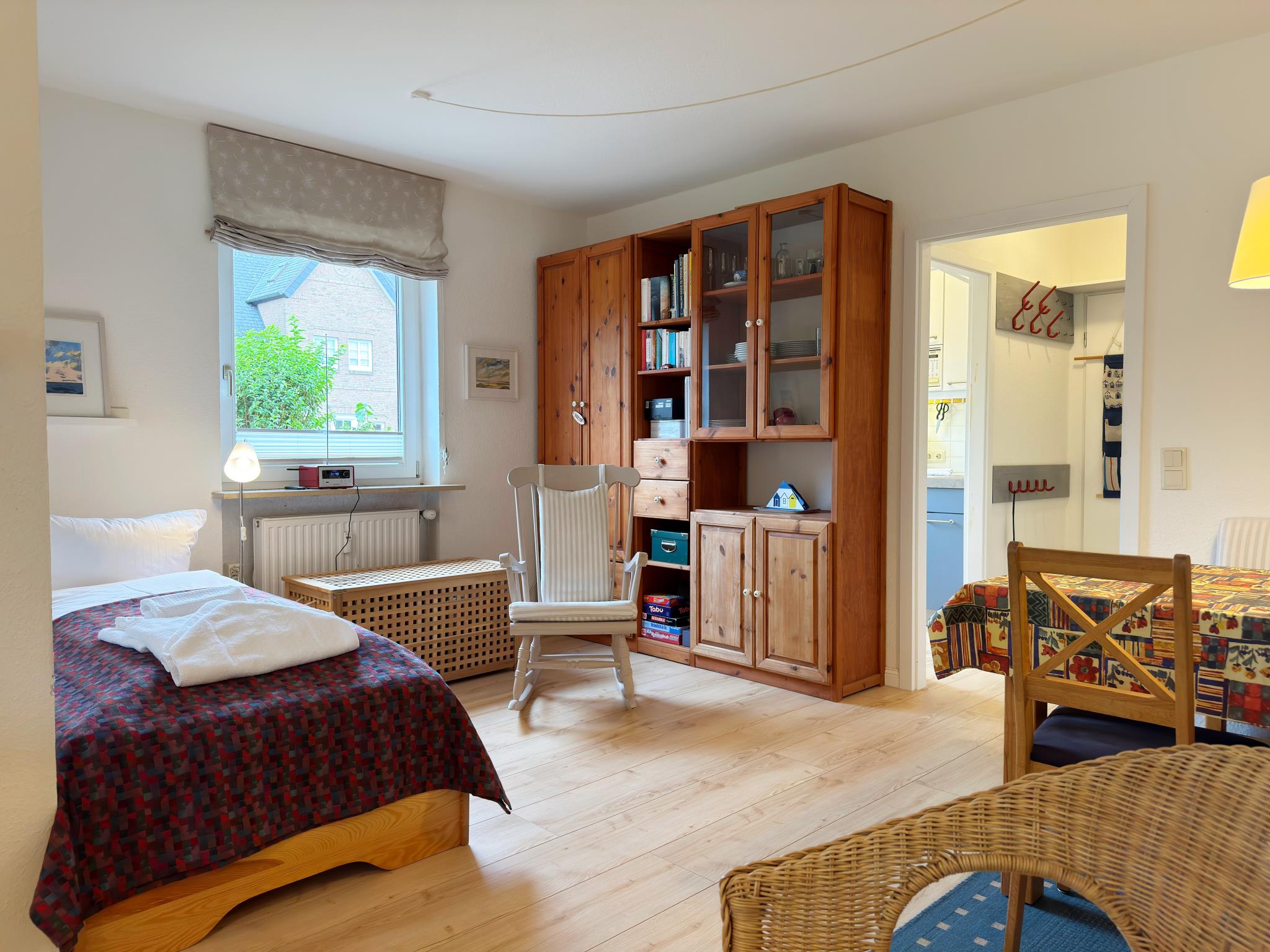 Unsere gemütliche, helle Ferienwohnung bietet auf 48 qm Raum für 2 bis 3 Personen. Am Südrand von Westerland gelegen, ist sie vom Bahnhof zu Fuß zu erreichen (Entfernung 900 Meter). Ihr besonderer Vorzug ist eine nach Süden gelegene Loggia, auf der die Gäste sich vor Wind geschützt aufhalten können, auch wenn es an anderer Stelle zugig und kühl ist.