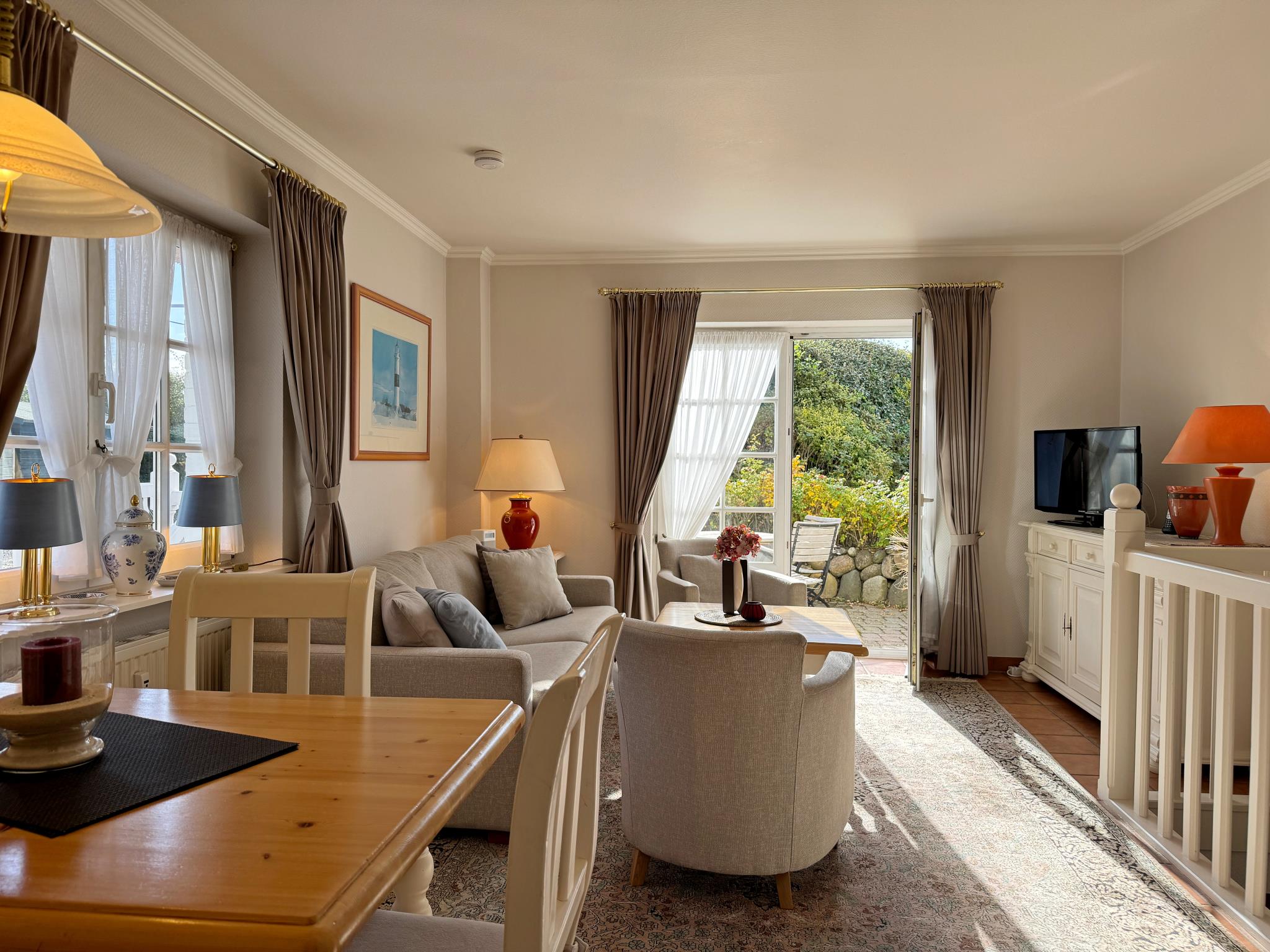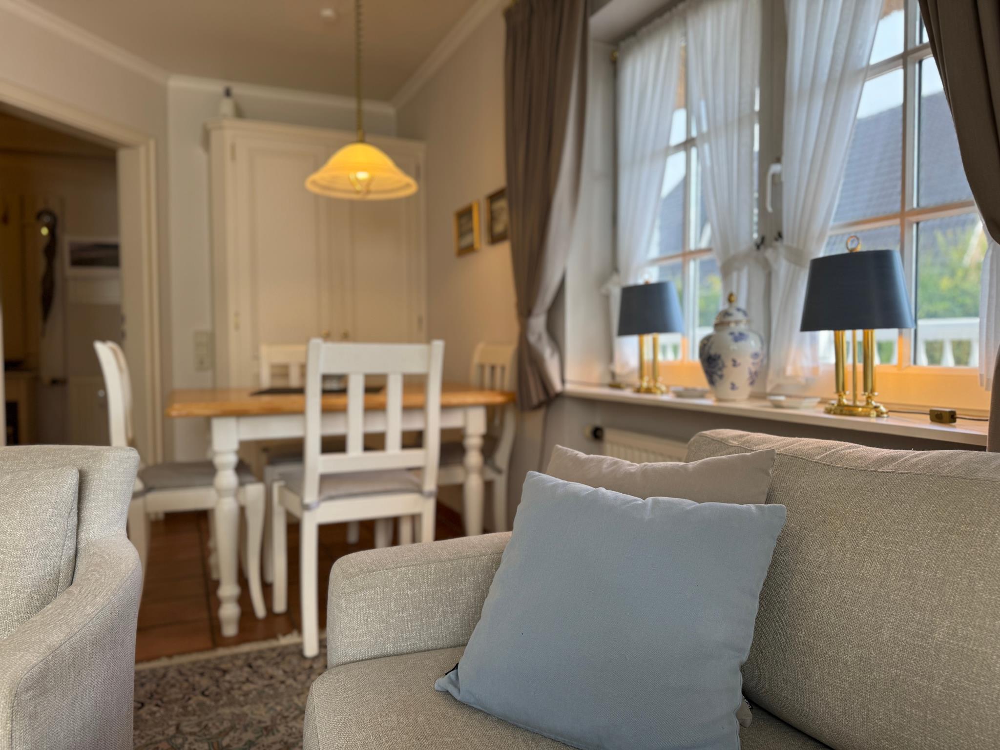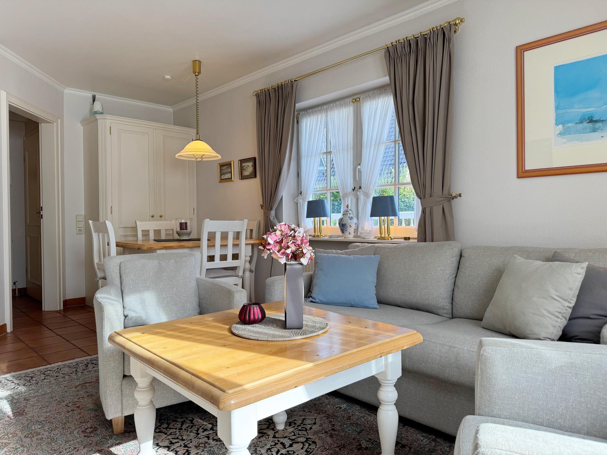 Der anschließende Wohn- und Essbereich ist hell und freundlich eingerichtet – ideal zum Entspannen nach einem Strandtag oder einem Bummel durch Wenningstedt.