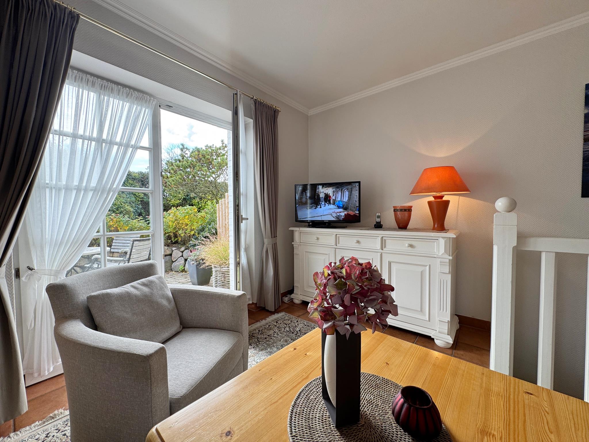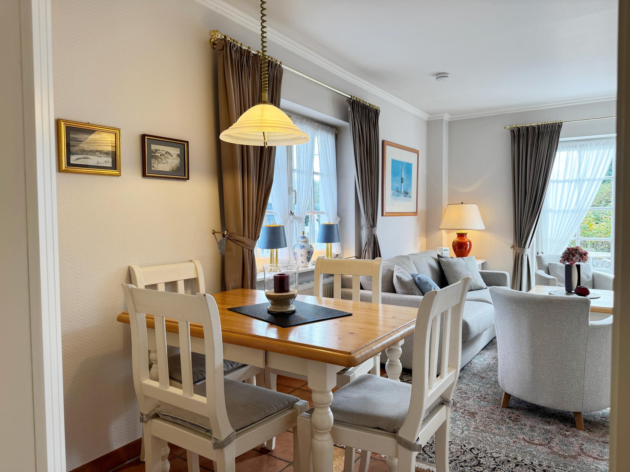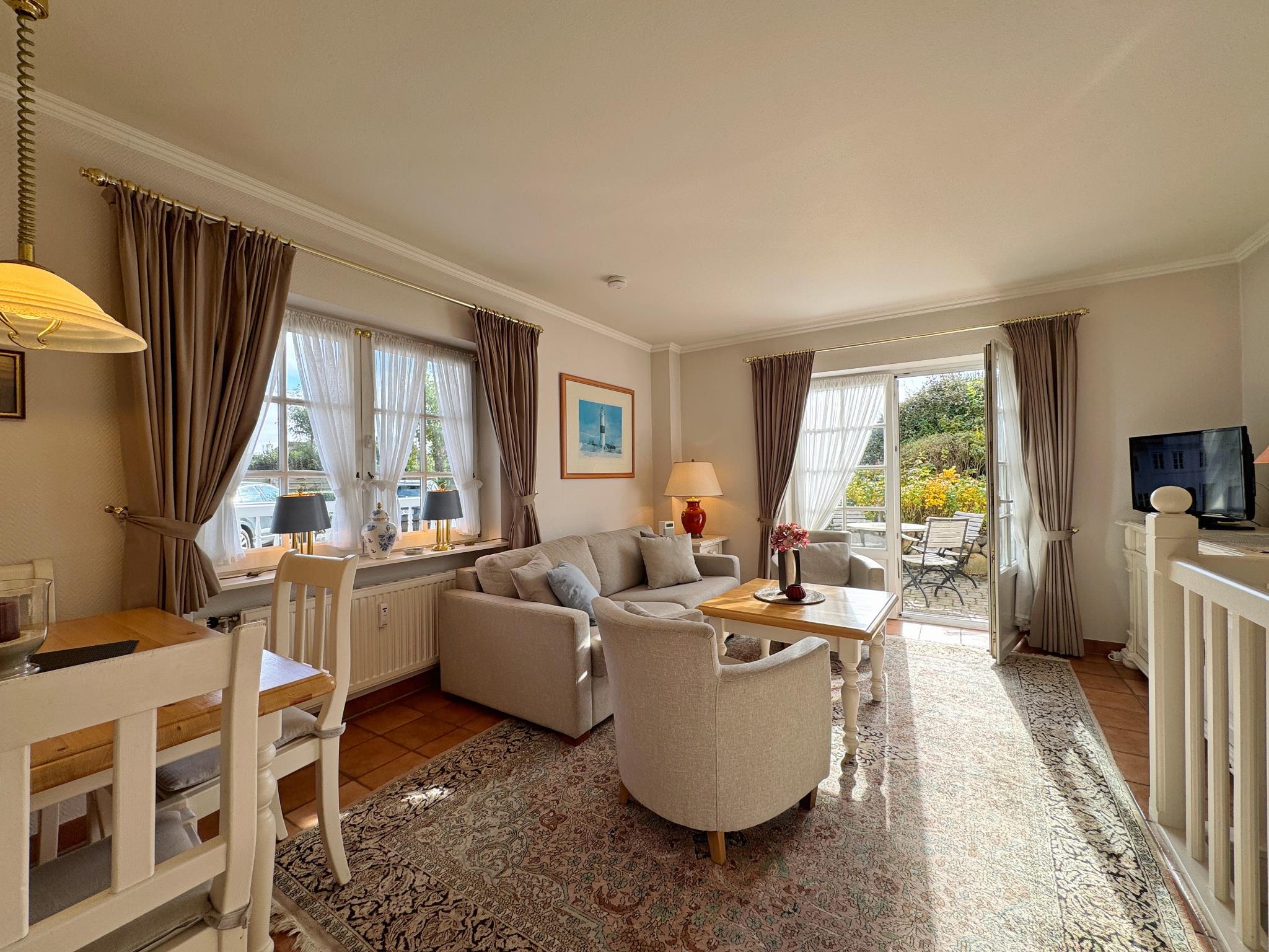 Der anschließende Wohn- und Essbereich ist hell und freundlich eingerichtet – ideal zum Entspannen nach einem Strandtag oder einem Bummel durch Wenningstedt.
