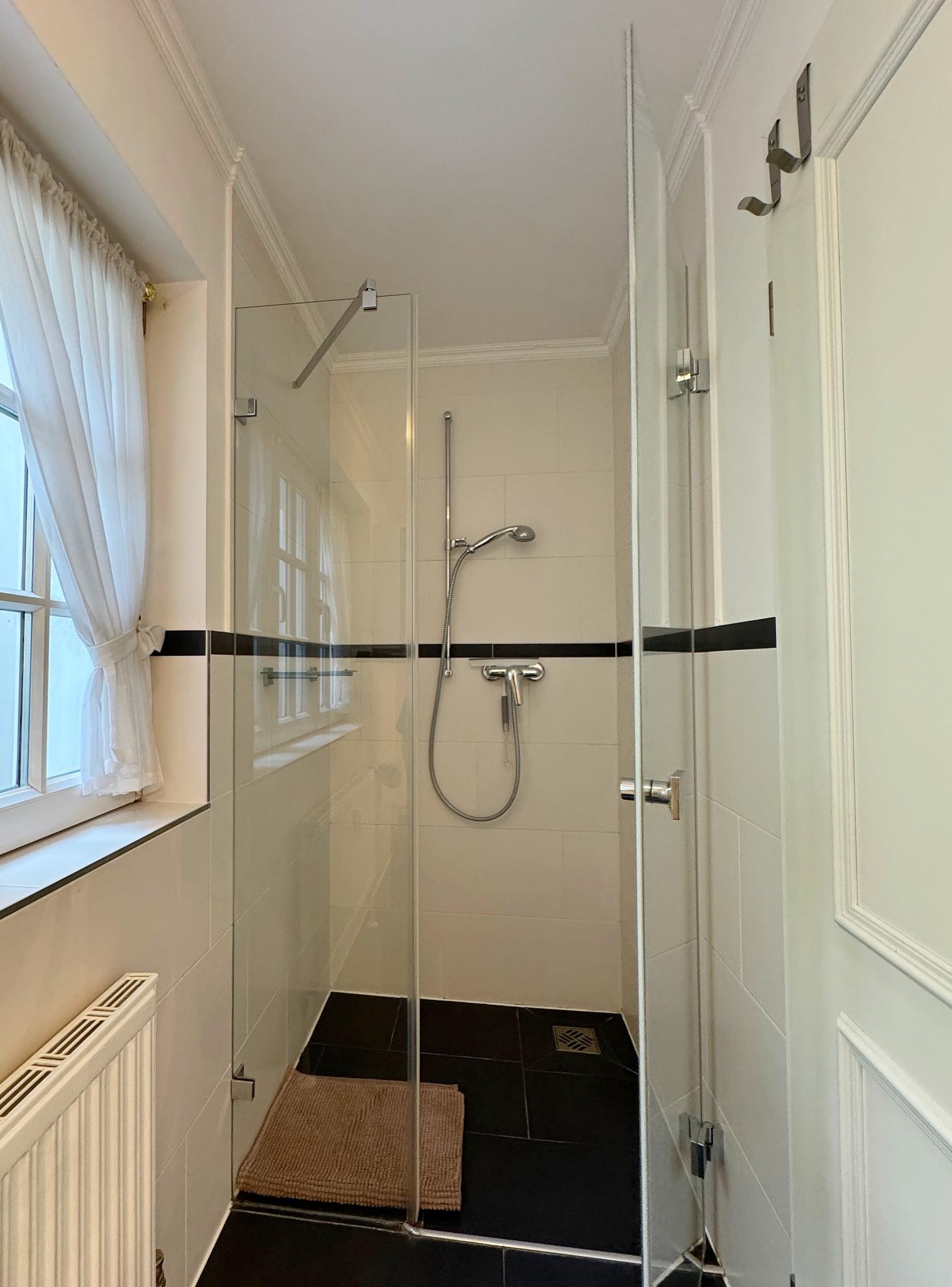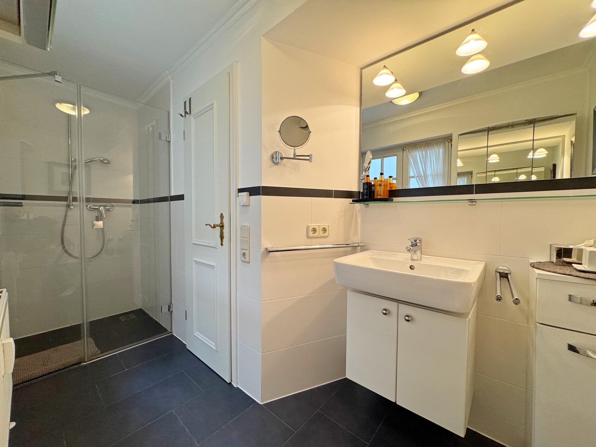 Das Schlafzimmer verfügt über ein komfortables Doppelbett und lädt zu erholsamen Nächten ein. Das moderne Badezimmer ist mit einer bodentiefen Dusche ausgestattet und wurde stilvoll gestaltet.