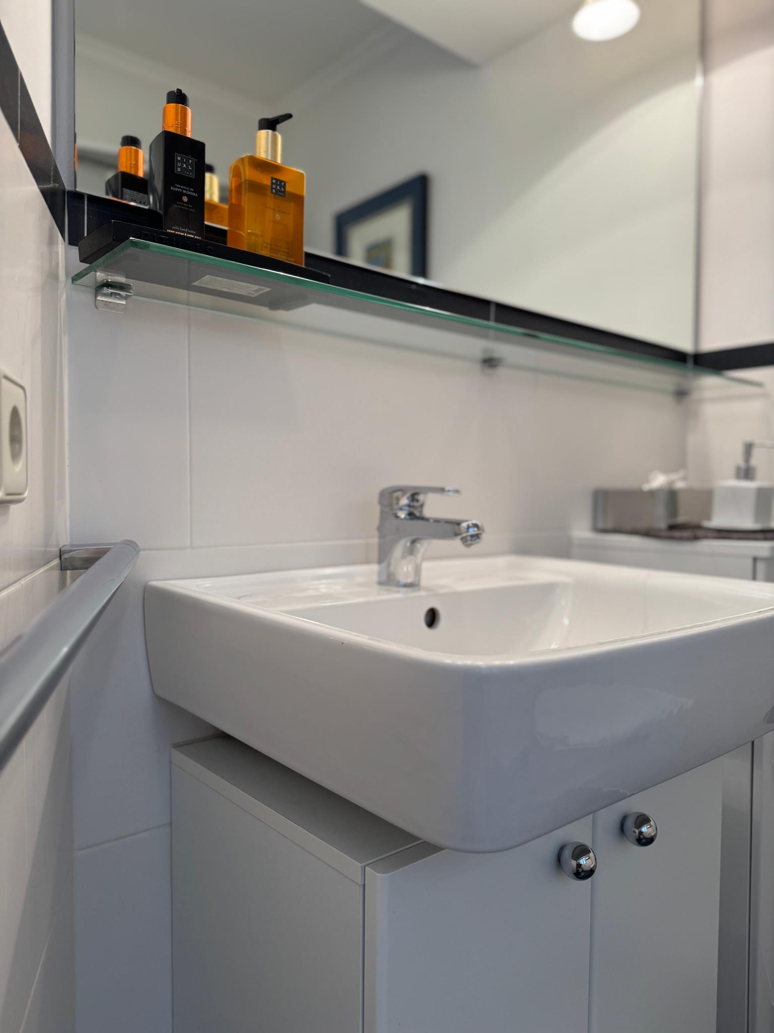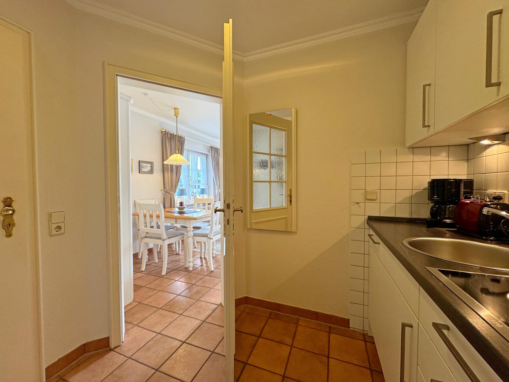 Beim Betreten der Wohnung gelangen Sie zunächst in eine kleine, aber sehr gut ausgestattete Küche, die alles bietet, was Sie für die Zubereitung Ihrer Lieblingsgerichte benötigen.