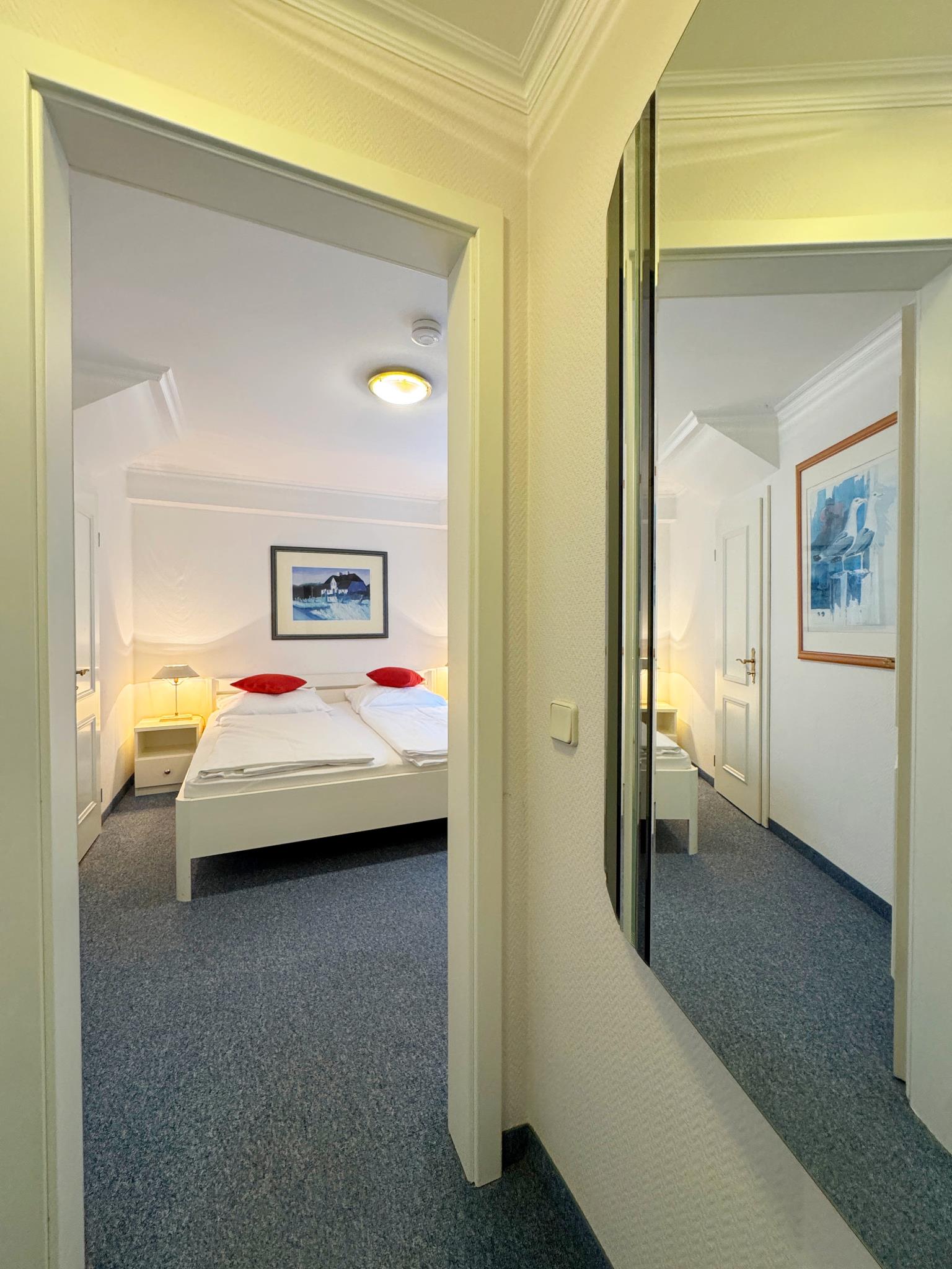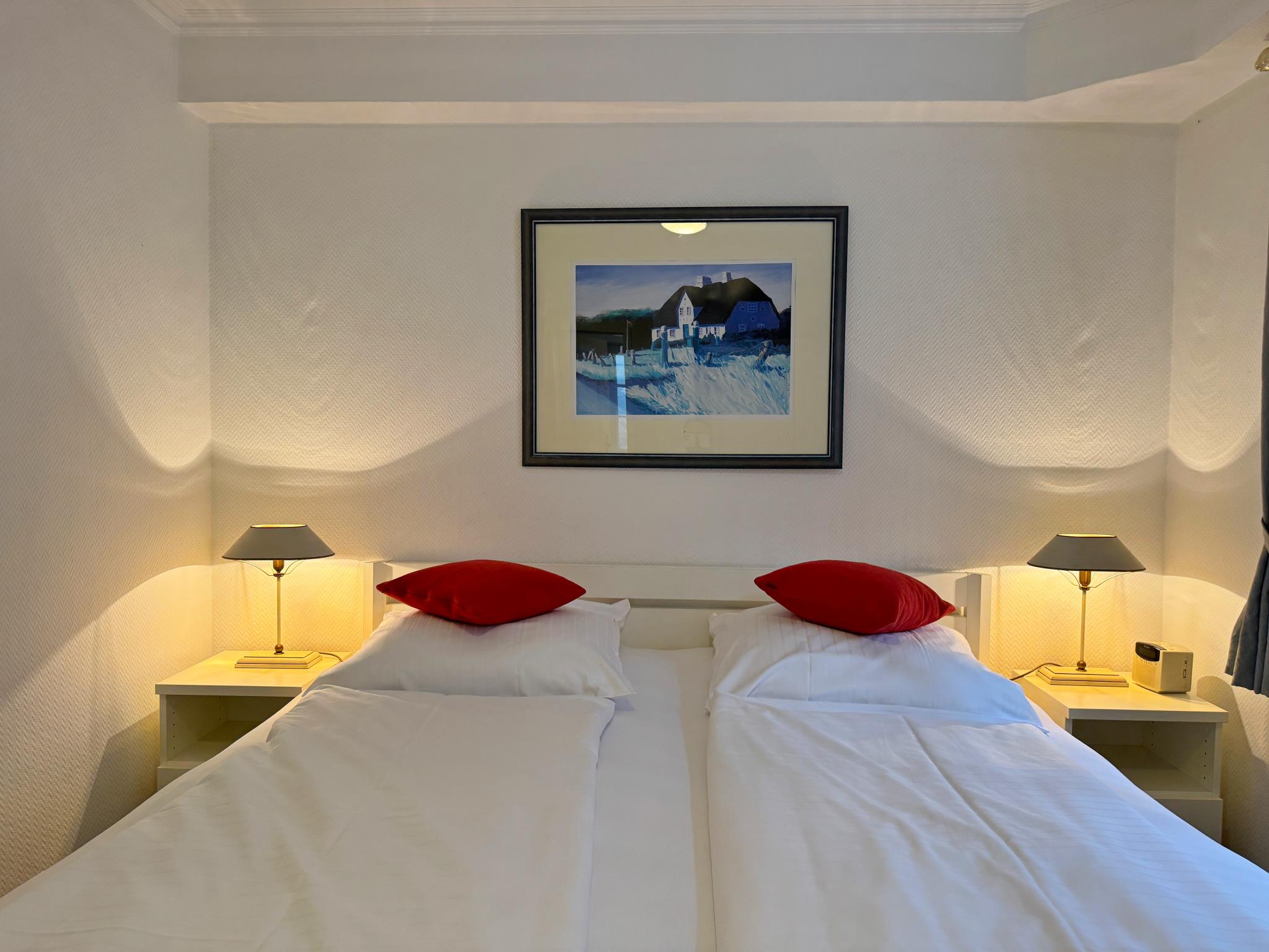 Unsere charmante, helle Ferienwohnung im Erdgeschoss des Hauses Witthüs bietet auf 50 qm komfortablen Raum für 2 Personen. Sie liegt in Wenningstedt nur wenige Schritte von Budni und Feinkost Meyer entfernt.